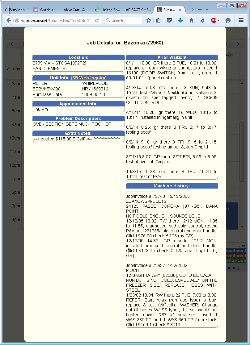 Similarly, for those servicers that advance quote particular (and variable) service call rates to their customers, we'll soon be uploading those amounts.