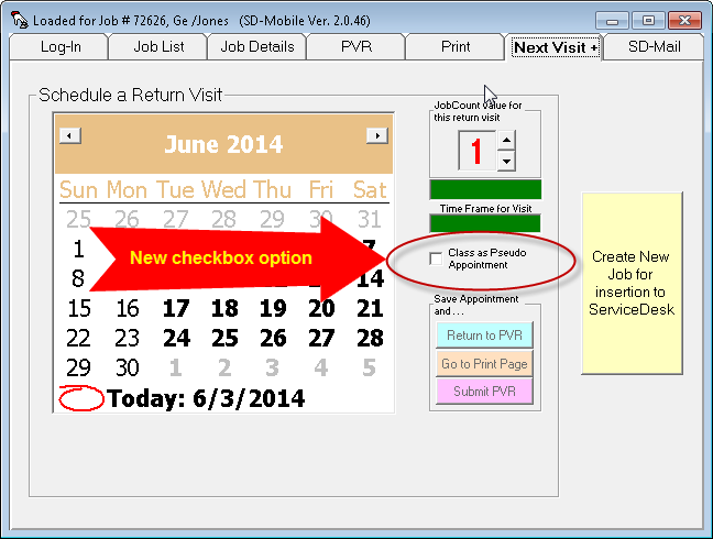 Now the system looks to see if: (a) you've booked your own return; and (b) you've requested a helper. If both are true, SD-MobileLink does NOT create the sticky-note, that it otherwise would to serve as the mechanism that tells ServiceDesk a helping appointment needs made when an office person books the primary return. Instead, it creates an SD-Mail to alert an office person to create the helping appointment for you.