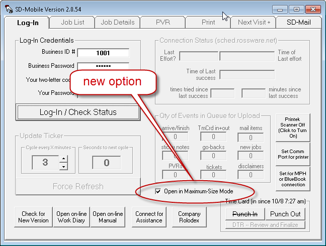 I've also created a new website downloads page, specifically for the two SD-Mobile programs (i.e., for SD-Mobile itself, and the SD-MobileLink utility that runs in the office). You can navigate there via normal means (i.e., go to our website, click on 'Updates', then pick 'SD-Mobile'). Or just use this link: