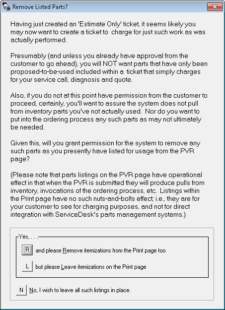 In May we announced that we'd finally added proper treatment for when a tech indicates he's used an inventory item that's designated in the office for quantity of "SU" -- which means it's a supply item (e.g., roll of tape, jug of freon, etc.). In other words, the tech may want to put in an indication of use on the customer's ticket, but it doesn't mean he's necessarily used up his supply and needs restock. Thus, when he indicates use of such an item a dialog now asks if he's actually used up his supply, or just used some of it.